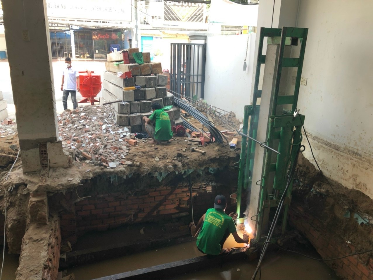 Ngoài ra, công ty còn tiến hành chỉnh nghiêng và nâng nhà lên cao 50cm. Việc này không chỉ giúp cải thiện hình thức của công trình mà còn tạo ra không gian sống thoáng đãng hơn cho người dân.